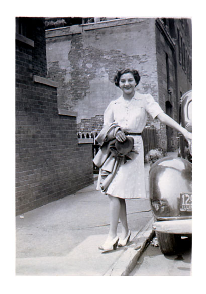 Rose LoVecchio (Frankie Laine's sister) taken in front of their house on Schiller Street. The brick staircase was added on to the LoVecchio house (DR).